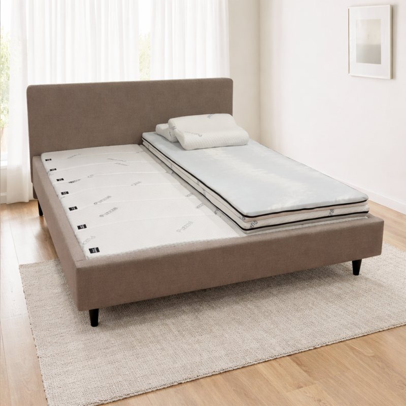 De Puzzzel Modules zijn losse, 7‑zone premium koudschuim elementen die je eenvoudig in je bedframe plaatst en verwisselt om jouw ideale ondersteuning te creëren. Iedere module (hoofd, schouder, rug, heup, boven‑ onderbeen en voet) kan anders zijn — zachter of steviger — zodat je het ligcomfort tot in detail afstemt op je lichaam, gewicht en slaaphouding.
